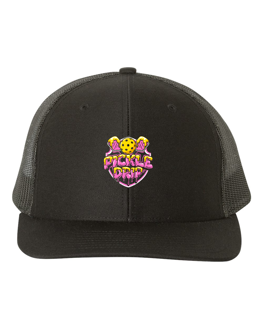 Stay cool and stylish with the Black Drip Cover, a high quality snapback trucker hat adorned with the PickleDrip Logo. Whether you're keeping the sun out of your face or perfecting your DRIP game, this versatile hat has got you covered. Made to last, it's the perfect accessory for any casual or sporty look.