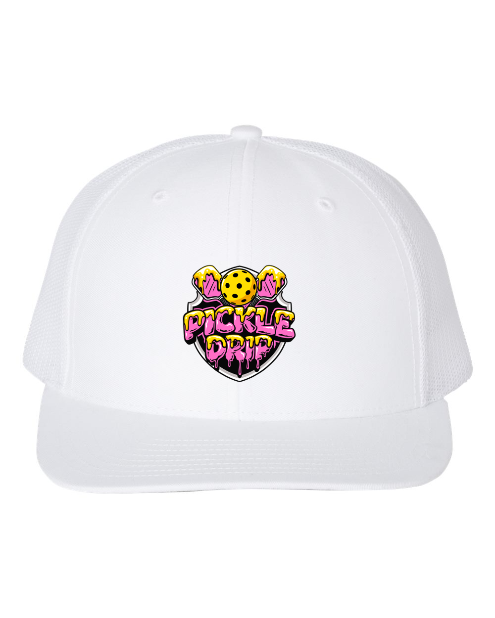 Get ready to drip in style with our White Drip Cover! This snapback trucker hat features the iconic PickleDrip logo, adding a touch of elegance to your look. Stay cool and trendy with this must-have accessory.